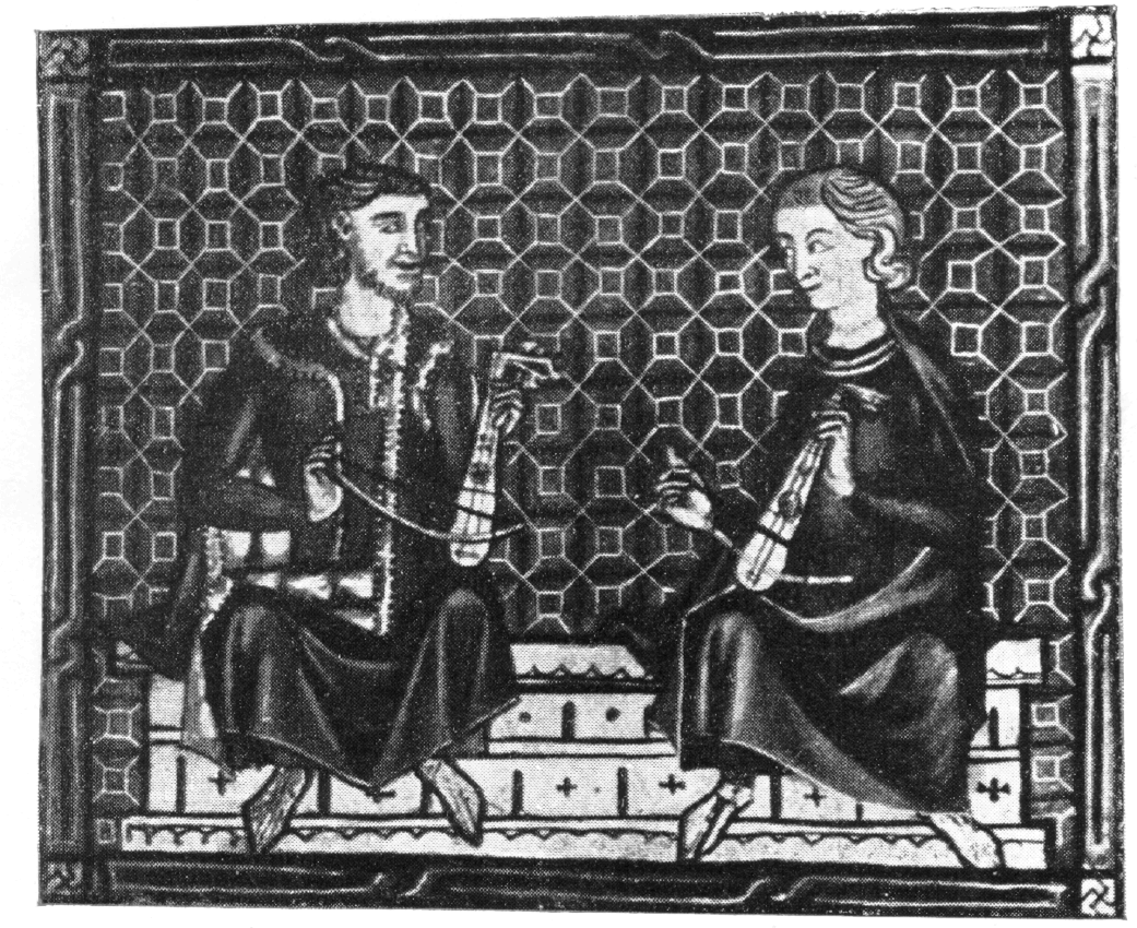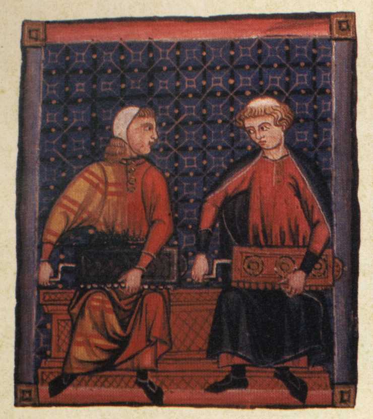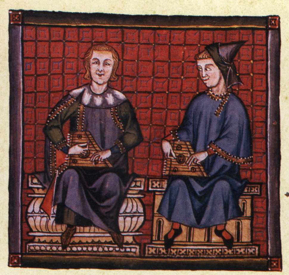 The illuminations themselves are in the E codex with every 10th cantiga. Image 1 is with Cantiga 10, Image 2 is with Cantiga 20, and so on. The entire E codex may be found elsewhere on this site, but the scans of these illuminations there are much less legible.