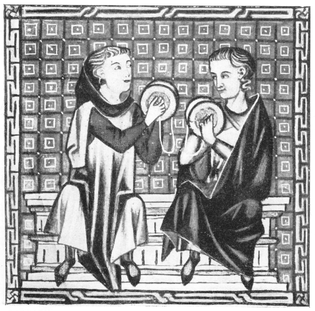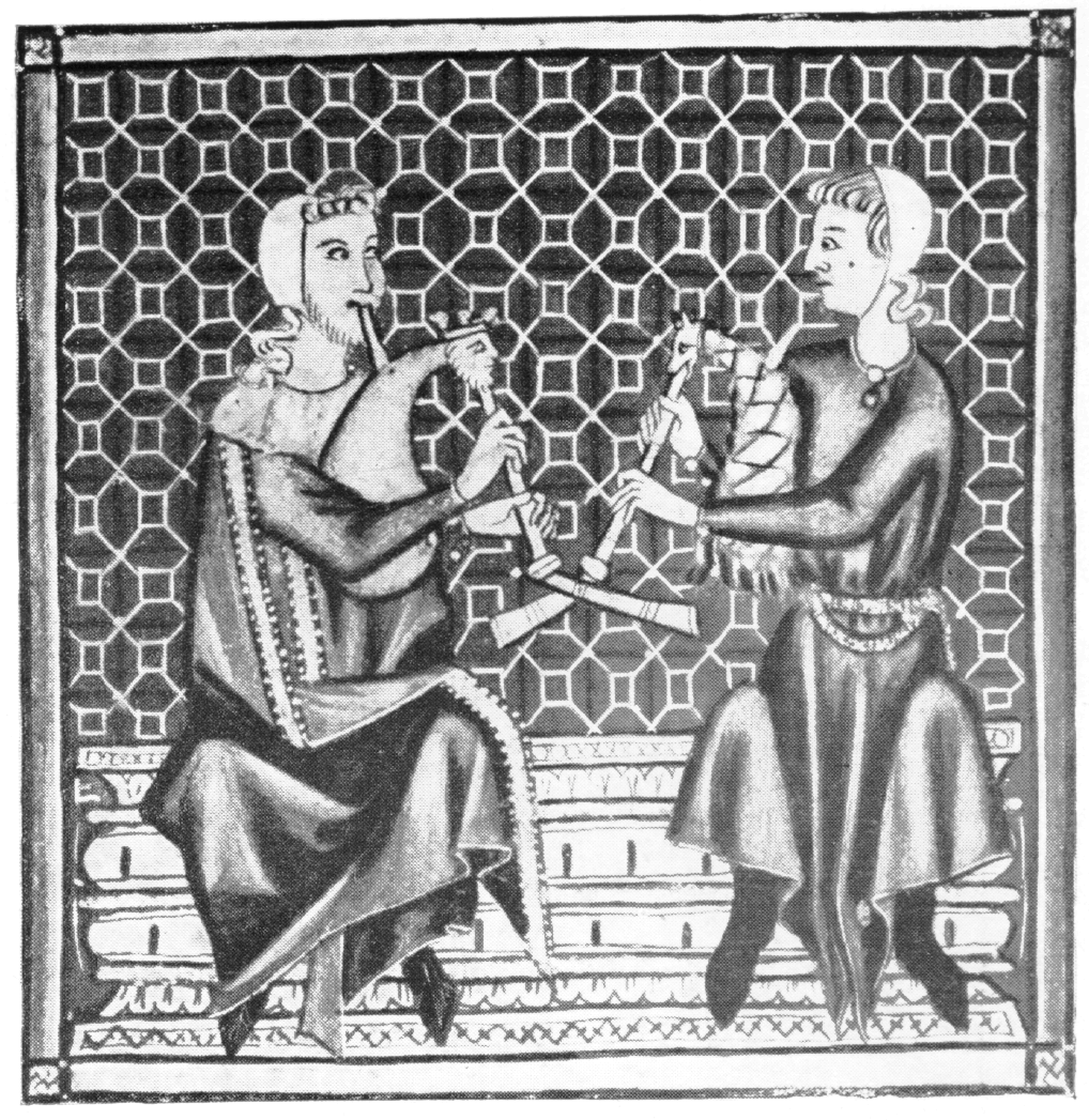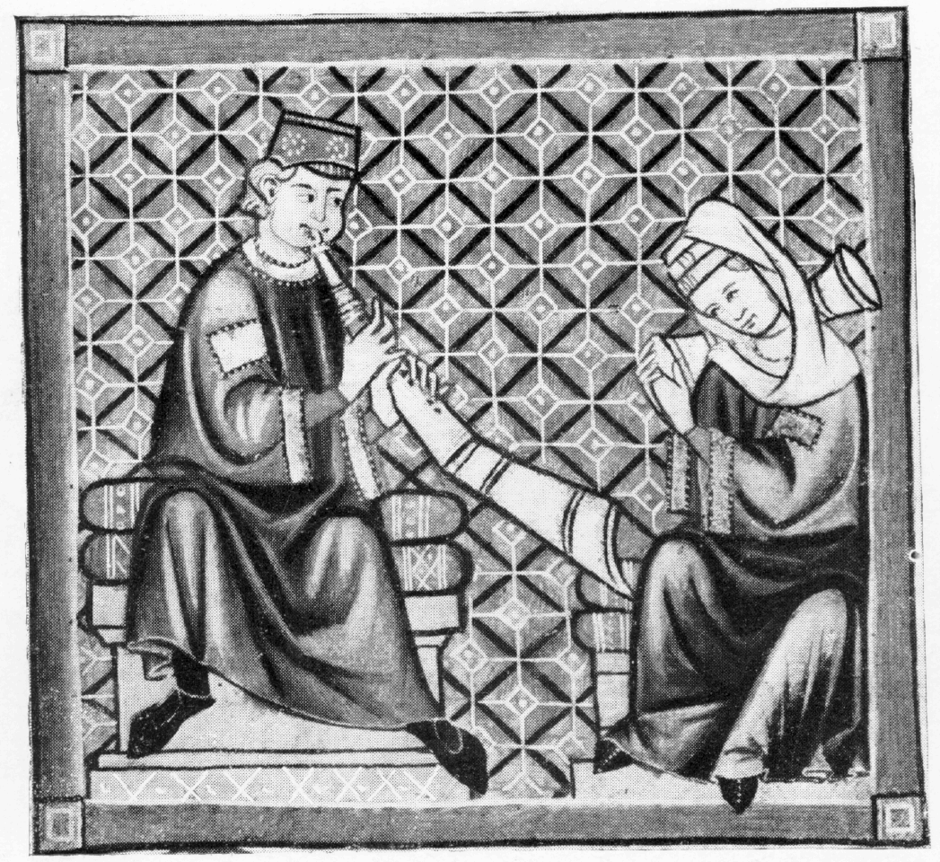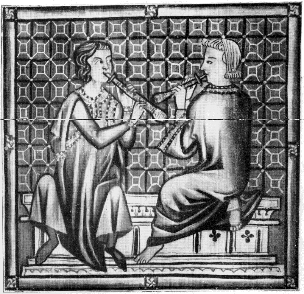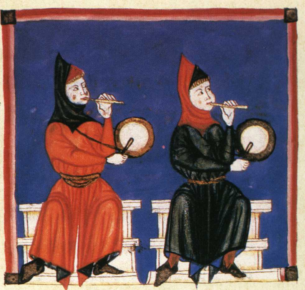I now have 2 sets of scans of the illuminations from the E codex of the Cantigas de Santa Maria: a partial color set from a color calendar facsimile, and a full black-and-white set from from Ribera's 1922 book. I do not have a scan of the illuminations in the T or Florencia manuscripts.