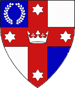 are Quarterly azure and argent, on a cross gules a crown between four mullets of six points