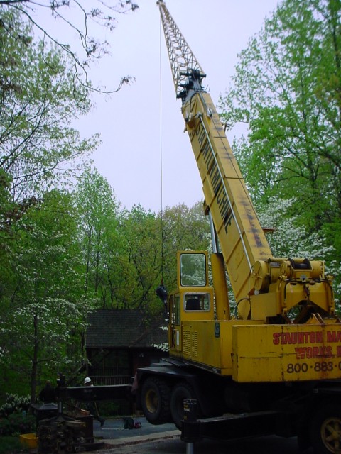 ![]() | When I sold my house in C'ville, not only did I have flying squirrels in the attic, groundhogs under the front porch, and carpenter bees, but one of my trees up and fell over on the house. This was the crane that they needed to get it out. Apr 2003. |