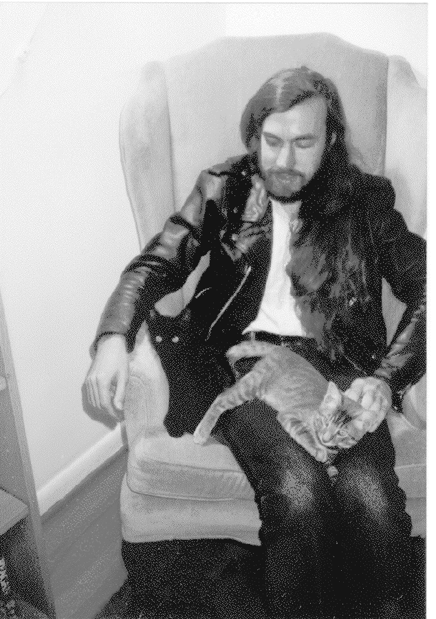 ![]() | Me, with a beard, leather, and cats. November, 1993. |