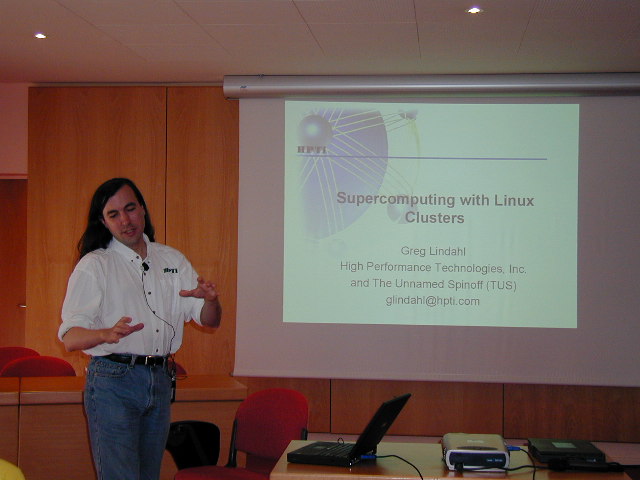 ![]() | At the First Myrinet User Group Conference in Lyon, France, September 28-29, 2000. Apparently some points require more body language than others. |