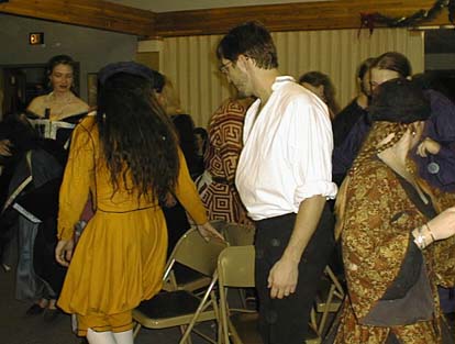 ![]() | Showing off my assets... I'm the one in yellow. Caer Galen Midwinter's Revel, late 1999. |