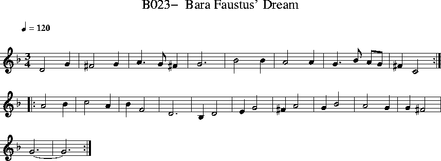 Music: in Ballet MS lute book (late 16th c.) and Byrd's Fitzwilliam Virginal book [midi] (with rhythmic changes...) The Ballet version has been reprinted in Breatchnach, Breandan Folk Music & Dances of Ireland, 1971. Ward points out 3 partbooks in the Cambridge University collection (Dd.5.21 fol 10 recorder, Dd.14.24 fol 9 cittern, Dd.5.20 fol 6 for bass viol.)