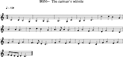 See also "Lord Willoughby" entry, for a ballad mentioning "carman's whistle" but is to be sung to "neighbor Roberte" (Lord Willoughby), which is a different tune. Simpson gives several "Carman's whistle" ballads which don't mention Lord Willoughby, but they are all much later. W. B. Olson has provided one such ballad, which definitely seems to fit Lord Willoughby's music and not this Carman's Whistle. So, in short, there is no evidence this tune was ever used for a ballad.