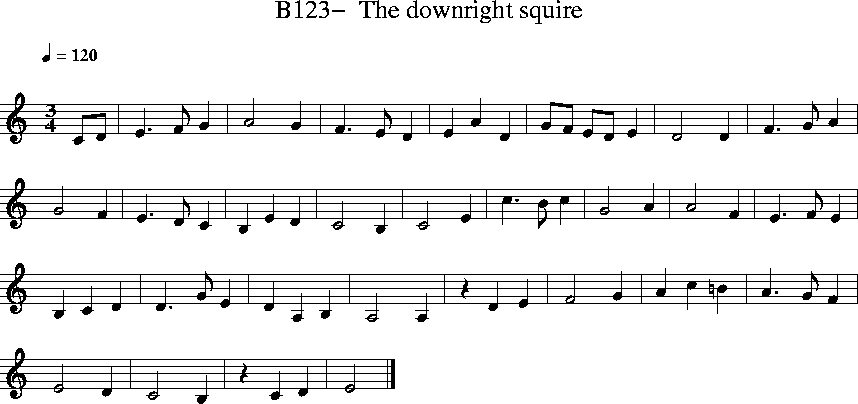 Music: with this title c. 1600 in Cambridge University MS Dd.2.11, fol 70, same tune 1590 Marsh Lute Book, p. 40, with no title, related tune called "The upright esquire" in Folger MS 448.16, fol 18v, dated from the early years of Elizabeth's reign.