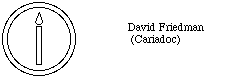 If you want to be part of our encampment at Pennsic, write. If you run your own in persona encampment, let us know how it works out. The badge shown above is registered in my name but intended as the symbol of an in persona encampment. Any such encampment is free to use it. Its blazon is "Azure, a candle inflamed within an annulet or."