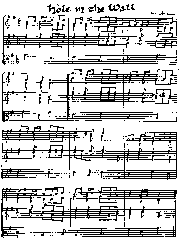 [I checked with my favorite source of dance arcana -- Baron Patri -- and got the following chronology for Hole in the Wall. Between the ninth (1695) and tenth (1698) editions of The English Dancing Master, there appeared an addendum, called The Second Part of the Dancing Master. Some copies of this have an extra sheet, which contains HiTW as well as a few other dances. By the 1698 edition of The Second Part, HiTW was in its main text, and it finally got into The English Dancing Master proper with the eleventh edition (1701). -- Justin]