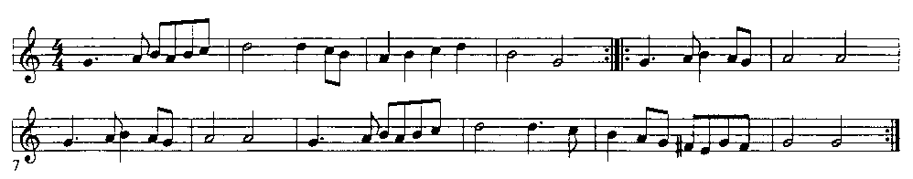 The "reprynce" in the chorus is a bit of a problem -- we don't know exactly what this is supposed to be. Wilson suggests [Wilson, pp. 14] that it may be a double with a hop on the first step. I find this a little awkward, so I choose to interpret it as Patri does, as simply a double step going backwards.