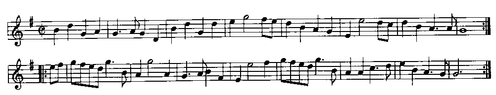 | B2 | Fall back a double with your corner and lead forward the same. Turn your partner by both hands once and a half times round and so end. |